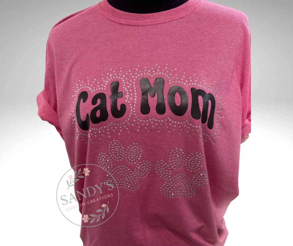 Add this sparkling “Cat Mom” tee to your cart today and wear your title proudly!